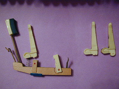On the left is a classic example of a spinet piano wippen with plastic flange, back check, and jack. This one should have a whole new wippen, not piece meal.