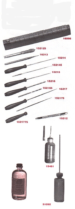 Eight broaches from .048 to .055-- in wood handles