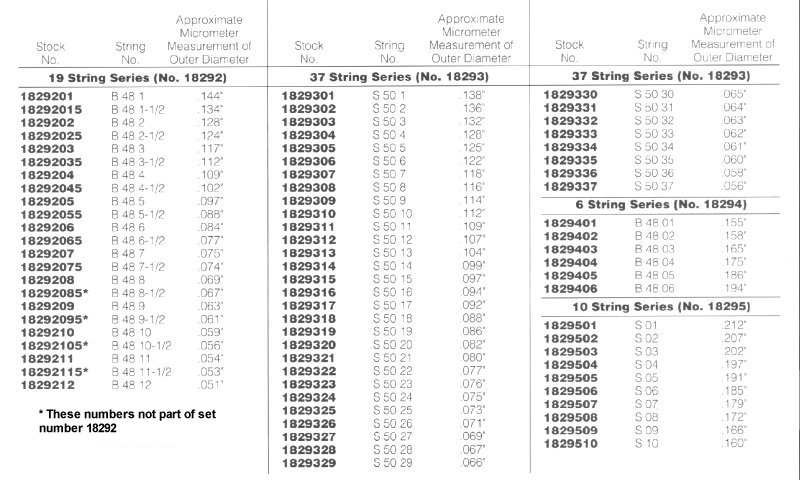 1. The diameter in thousandths of an inch of the steel core wire (NOT metric please).