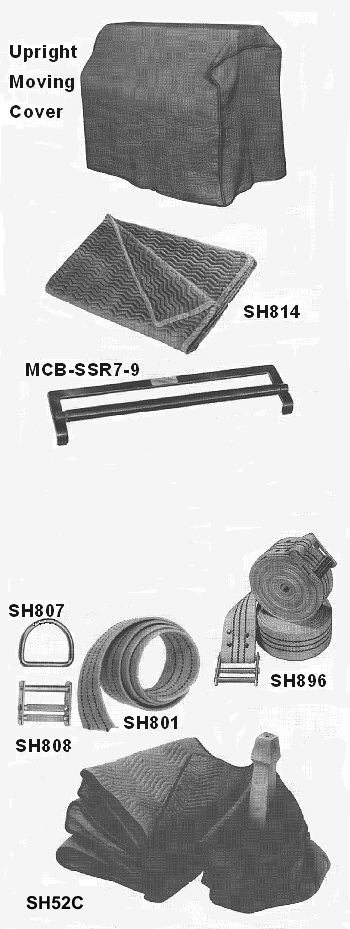 Moving pads, shrink wrap, piano skid, E-straps, door jamb protectors, skates,