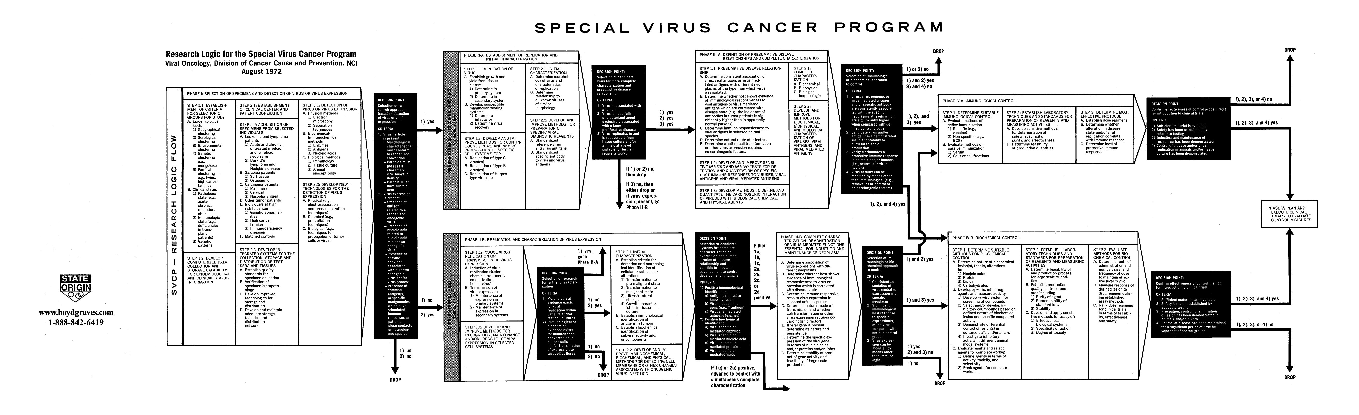 The 1971 AIDS flowchart coordinates over 20,000 scientific papers and fifteen years of progress reports of a secret federal virus development program. The epidemiology of AIDS is an identical match to the "research logic" identified in the five section foldout. The flowchart is page 61 of Progress Report #8 (1971) of the Special Virus program of the United States of America. We today, challenge world scientists to discussion of this document find. We believe there is a daily, growing number of world experts who are all coming to the same conclusion regarding the significance of the flowchart. Dr. Garth Nicolson has examined the flowchart as well as other top notch experts from around the world. It is time for Dr. Michael Morrissey of Germany to examine the flowchart and report to the world. In addition, we have now examined the 1978 report. It is heresy to continue to further argue the program ended in 1977. The 1978 report of the development of AIDS leaves no doubt as to the ("narrow result") candidate virus sought by the United States. The flowchart conclusively proves a secret federal plot to develop a "contagious cancer" that "selectively kills."